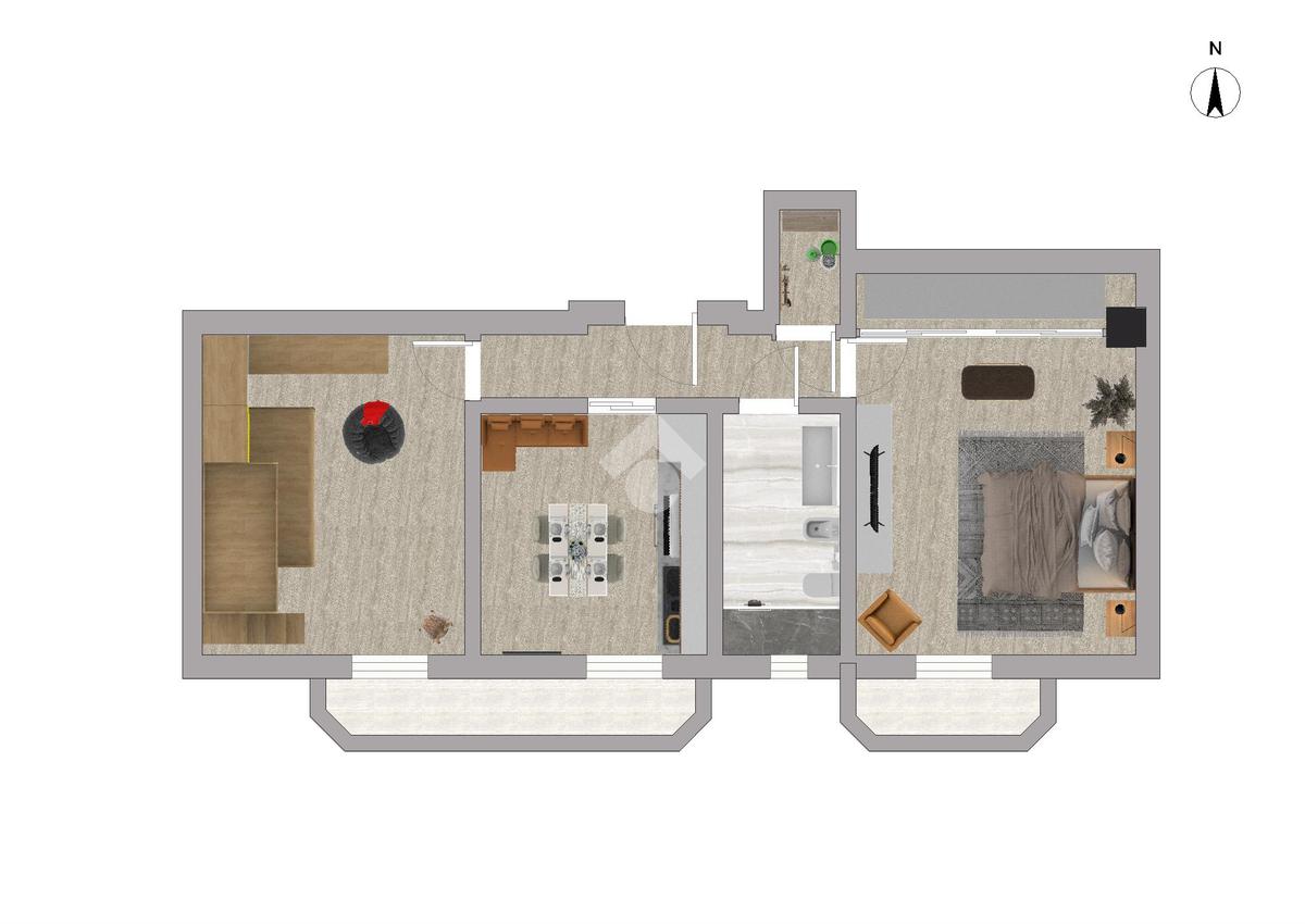 Due balconi garantiscono un'ottima luminosità naturale, rendendo l'ambiente accogliente e arioso.